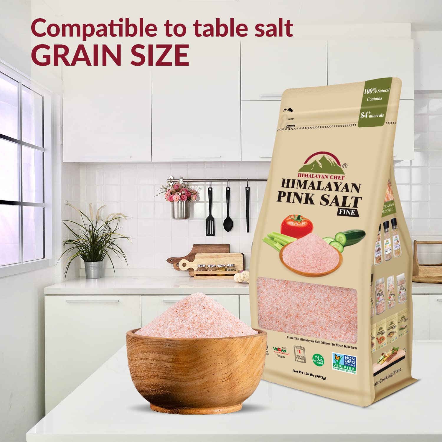 Himalayan Chef Himalayan Pink Salt, Fine Grain Bulk Size - 20 lbs, Kosher & Halal Certified, Natural & Chemical Free Rock Salt – Bag—